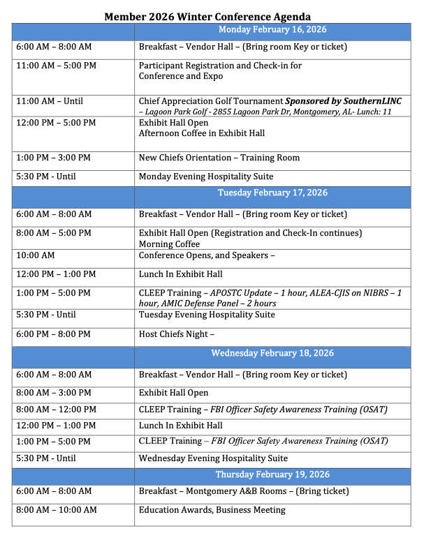February 15 - February 19, 2026 Renaissance Hotel and Convention Center Montgomery, Alabama